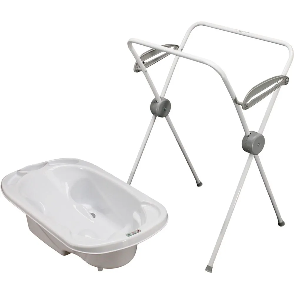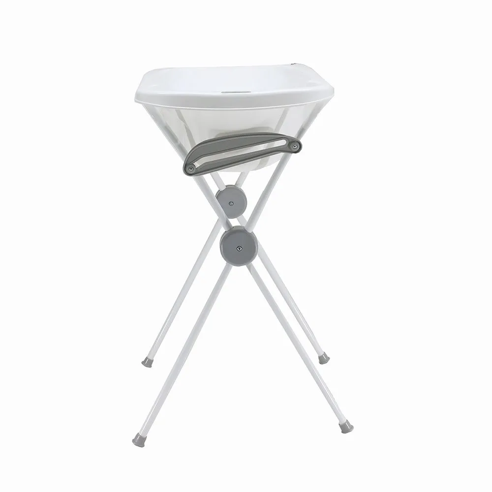 Chasis plegable, balde rígido con tapón y tubo de desagüe.