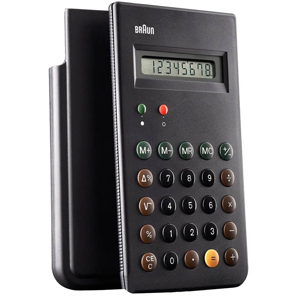 Esta calculadora Braun es la sucesora de la legendaria calculadora Braun ET66, que se considera un icono del diseño. La calculadora Braun BNE001 se considera la culminación de la filosofía de diseño «menos es más» de Braun gracias a su diseño simple y rectangular con botones redondos y curvos.