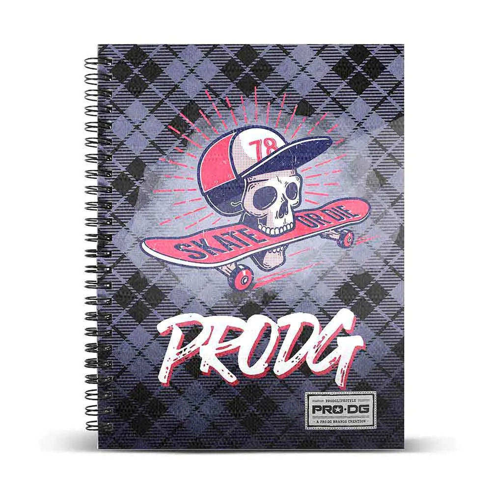 Bloc de notas de tapa dura encuadernado con espiral. Contiene 120 hojas interiores a rayas.