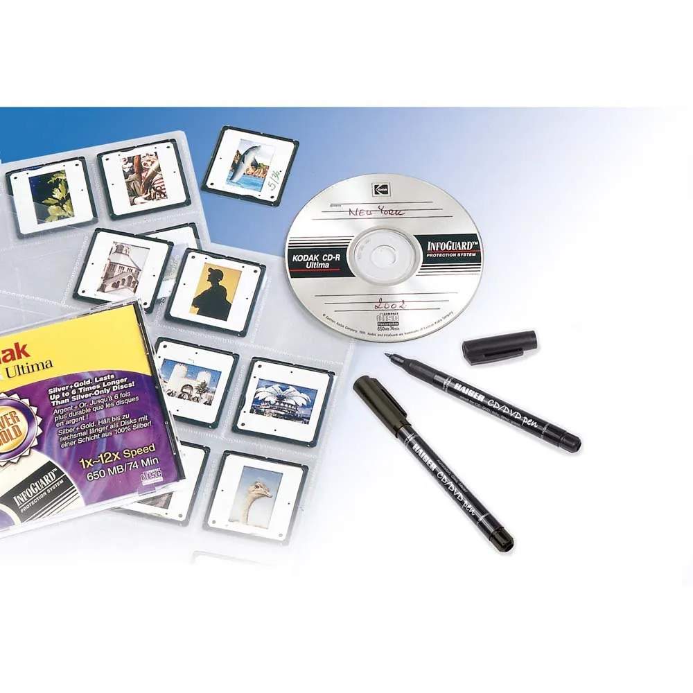 No mancha, para etiquetar CD, DVD, marcos de diapositivas, papel fotográfico recubierto de plástico, transparencias y películas. También es adecuado para plástico, vidrio, metal y otras superficies lisas. Secado rápido.